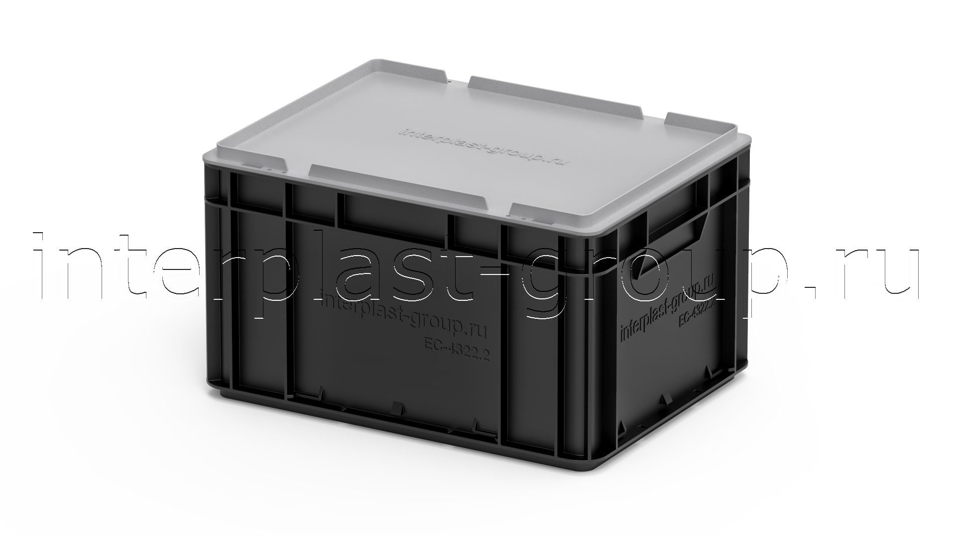Евроконтейнер закрытые ручки/сплошное дно (черный), 400x300x220 мм